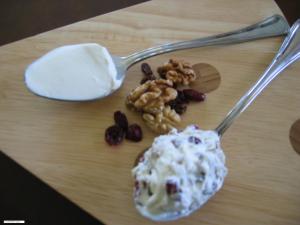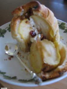 Chop finely walnuts, cranberries and sultana’s together. Combine with the cream cheese. Press firmly into the centre of the apple.