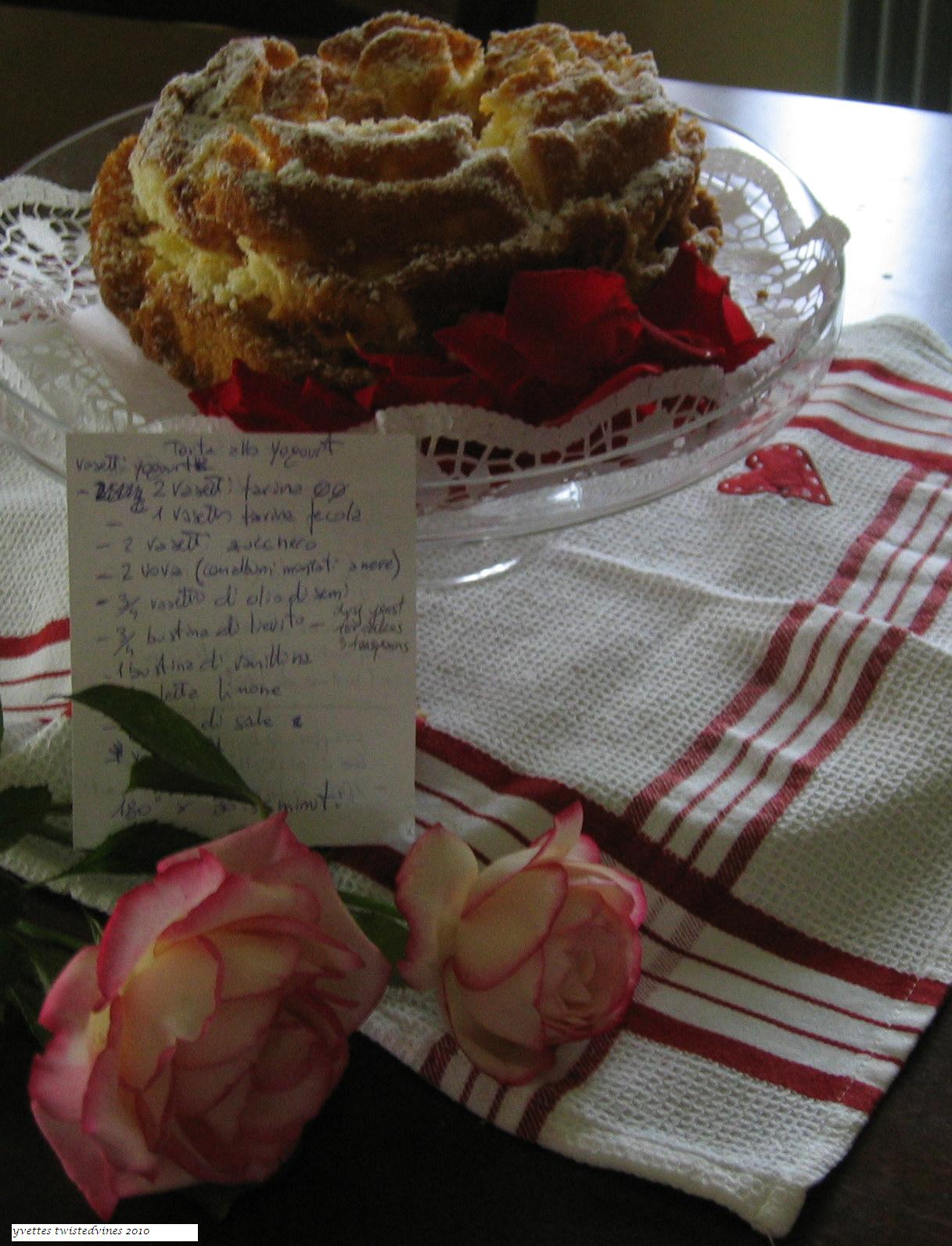 The fun part about this cake is that all the measurements are used with the tub of yoghurt. She was so enthusiastic about telling me about this revolutionary measuring method I wish you could have shared the moment with me. As she lived across the road from where we were, she dashed across the road, grabbed the recipe at hand with note-book and pen and wrote down this recipe for me. A great moment, and one to remember. It’s been difficult “fitting” into the local Italian community of traditional ways and customs, and believe me it’s hard as a “stranger” not only communicating, but being accepted into the community. It was a touching moment for me to think that this lady opening shared with me one of her beloved recipes. I had touched common ground, the kitchen chit-chat. A bonding of ingredients. A mixture of friendships.