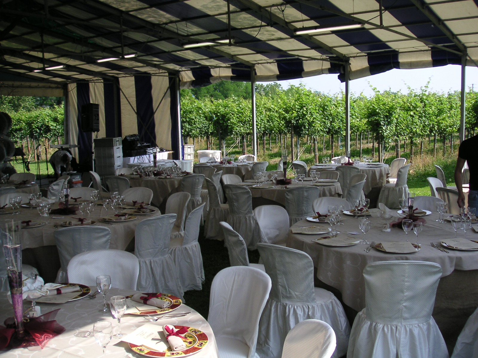 The marque was constructed in our backyard, with the wonderful backdrop of our vineyard.