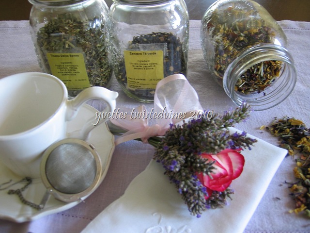 A fragrant favorite of mine is “Tisana Meditazione” – Meditation Tea. It’s a combination of mint, cinnamon, sunflower petals, rose petals,chamomile and lavender.