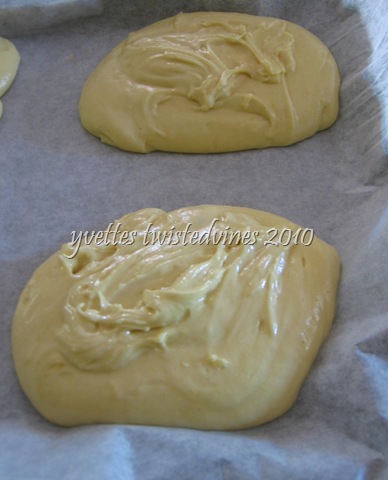 Divide the batter mixture in 3 equal mounds,placing on oven proof paper onto a baking tray.