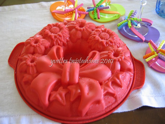 This centerpiece is just fabulous to jazz up your fresh fruit an ice-cream platter.Made from a silicone cake mould,its very simple to make. There are so many designs nowadays available in silicone, your choice is unlimited.Here’s how to prepare your centerpiece.