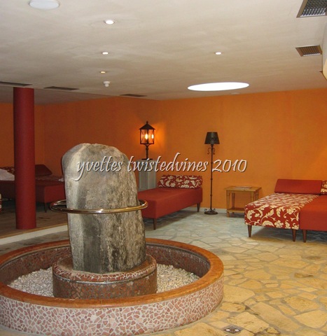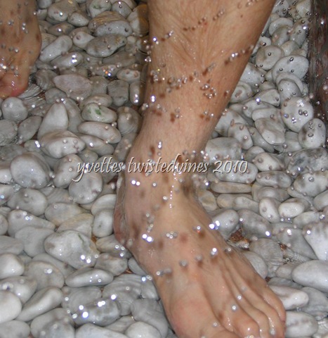 Hot and cold water sprays from the outside borders as you walk over the stones…not to everyone’s liking…