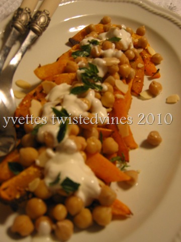 …to sweet butternut .As we’re still not cold enough for those marvelous tasty pumpkin soups and cottage pies, My result, this warm pumpkin and chickpea salad.