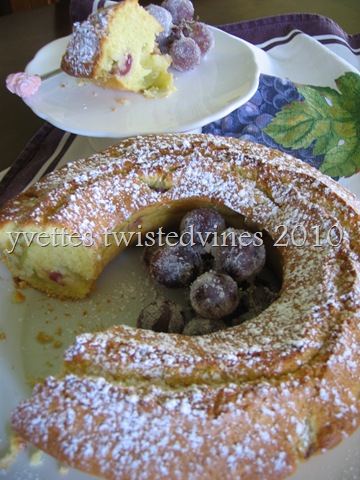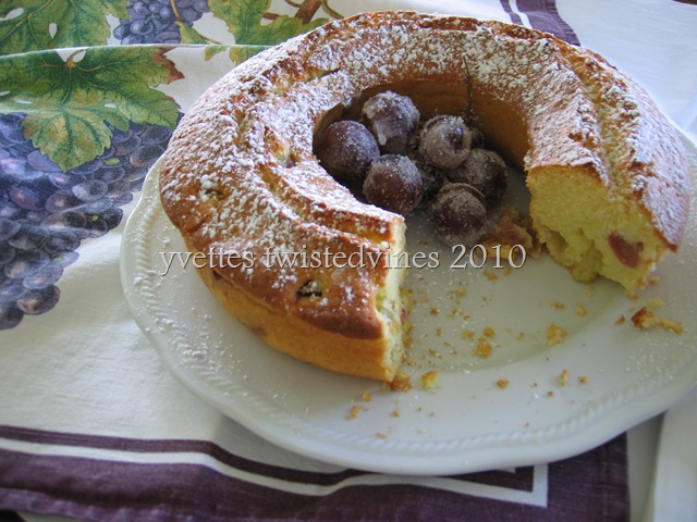 Today’s pound cakes are still buttery, rich and moist with a golden crust. In Italy this cake is called Bussolano or Ciambella Mantovana – Mantovana Ring cake. It’s usually made plain or chocolate flavour and served in the morning for dunking into coffee or hot milk.I found this recipe with it’s twist of using seasonal grapes both white and red and adding a glass of sweet white wine to the mixture.