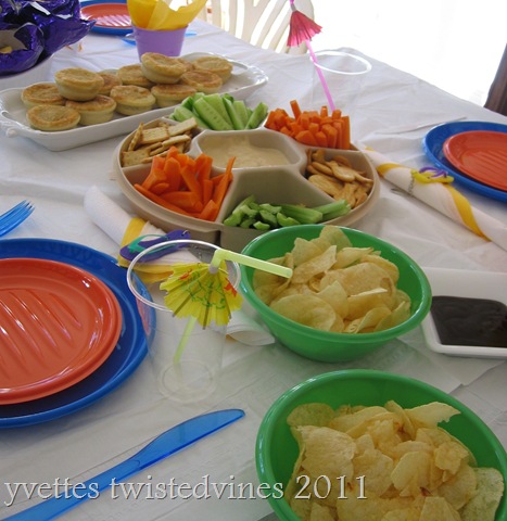 We made the usual party food things and also some healthy throw ins, everyone had fun and the table was an array of rainbow colours.
