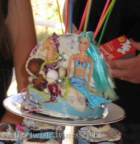 We even made the cupcake casings made with beautiful paper,jewels and crystals.The cupcakes were chocolate fudge with a cream cheese icing and a Belgium chocolate seashell on top.