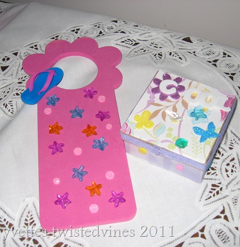 And then had fun with scrapbooking techniques covering boxes and doorknob hangers…
