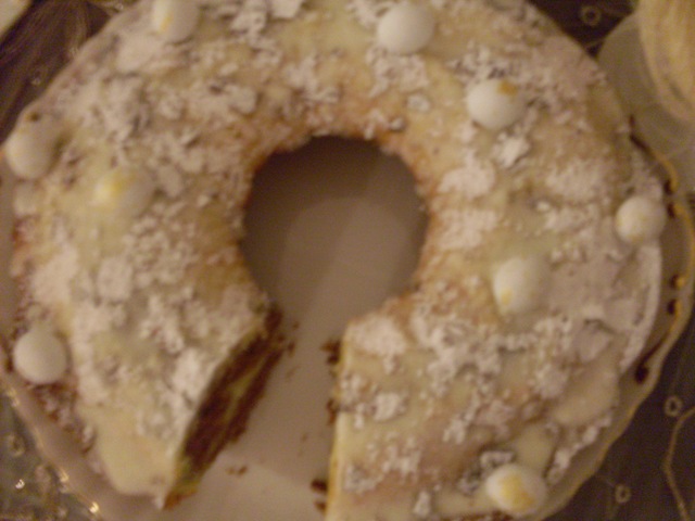 So, yes this cake is alot of work, but everyone enjoyed it and really it’s a wonderful dessert for any occasion. I decorated this cake with a creamy frosting covered in icing sugar and mint chocolate Easter eggs.