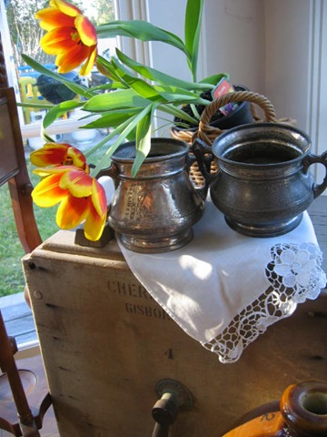 Wow…what wonderful processing…a great still life as well. I love the antique silver and the lanky tulips…so pretty! Well done! ( “