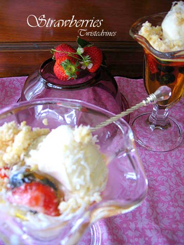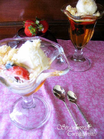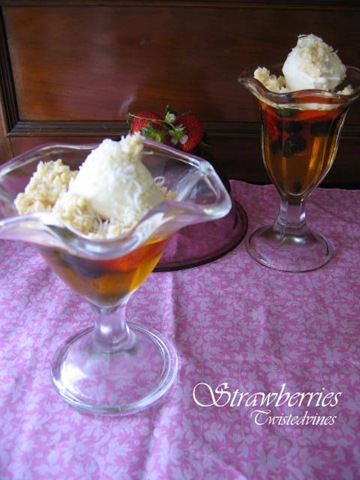 The sweet temptation of fresh strawberries. Nothing fancy involved, just pineapple jelly, blueberries and strawberries, vanilla ice cream sprinkled with white chocolate and coconut mixed topping.