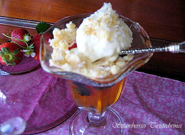 Served in parfait glasses. Mix 250ml of boiling water with the jelly, pour into serving glasses, insert fresh chopped strawberries and blueberries and leave to set overnight. Serve with a scoop of vanilla ice cream sprinkled with melted white chocolate buds and shredded coconut. Sweet temptations!