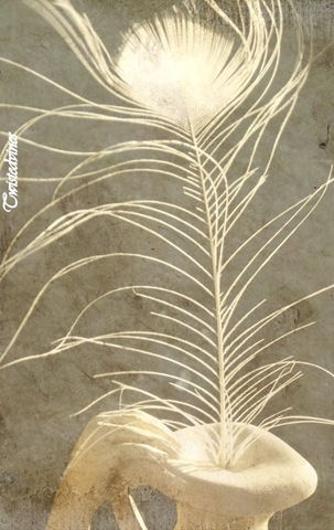 This beautiful white feather belongs to a white peahen, who surrounded by her peachicks and many a striking peacock, wanders around the estate, although they constantly call to each other they have a peaceful and harmonious feeling surrounding them as they freely walk around. The first thing that comes to mind are the males beautiful colourful feathers and their long flowing ‘trainì of tail feathers. Just beautiful.